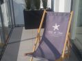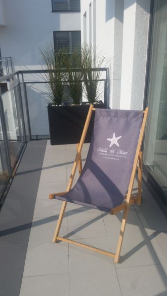 mit einem großen dreifachen Kleiderschrank mit Kleiderbügeln und Platz für Gepäck und Kleidung, mit einem großen Spiegel und Strand-Accessoires (Decke, Strand-Raumteiler, Liegestühle)