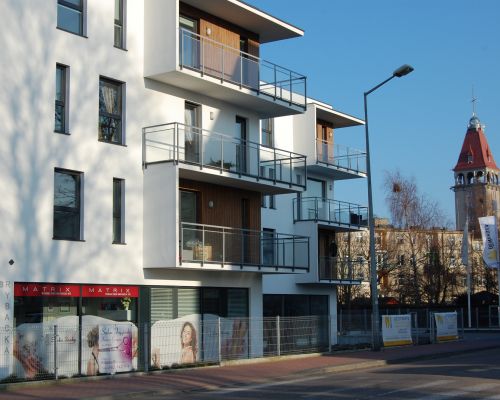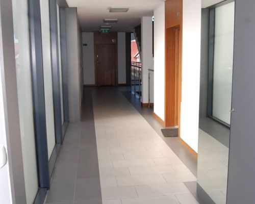 Im Erdgeschoss befindet sich ein Wellness-Studio, Friseur und Zahnarzt. In der Nähe des Gebäudes gibt es Lebensmittelgeschäfte und ein Café.