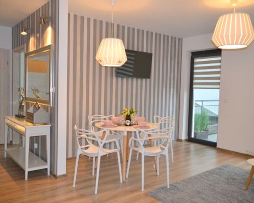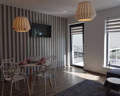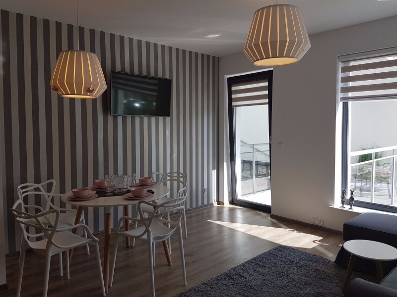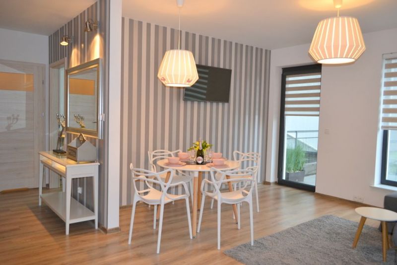 Stella Dell Mare 3 is a modern, comfortable apartment, built in March 2017, two bedroom apartment with an area of 46.08 square meters fully equipped with all the necessary stuff. Situated at Rybejka 8b / 6 Street on the first floor of the Vento Apartment, it has a quiet elevator and its own private space in the garage with a lockable gate on the remote control.