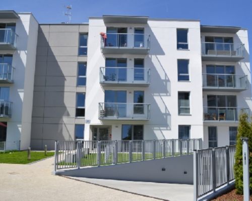 W pobliżu apartamentowca dworzec PKP, centrum 100m.